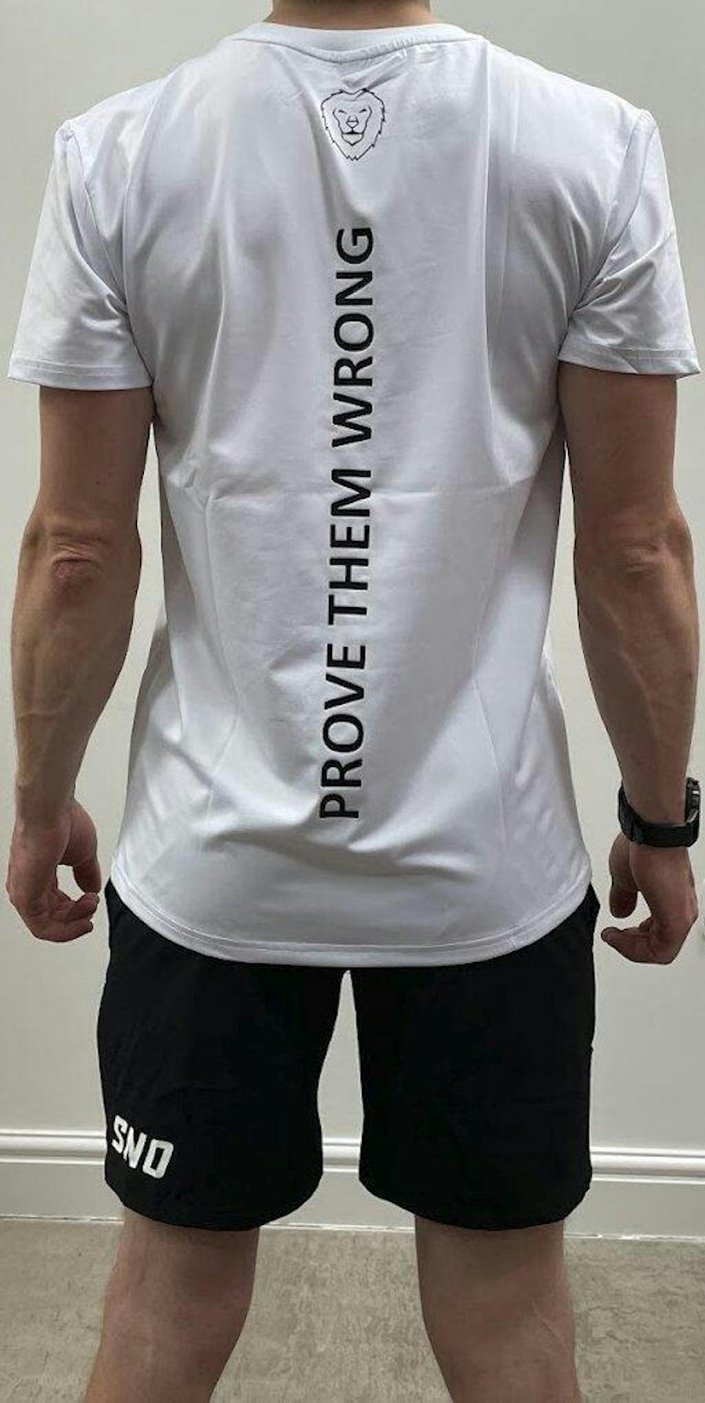 Person wearing black athletic shorts on a white background